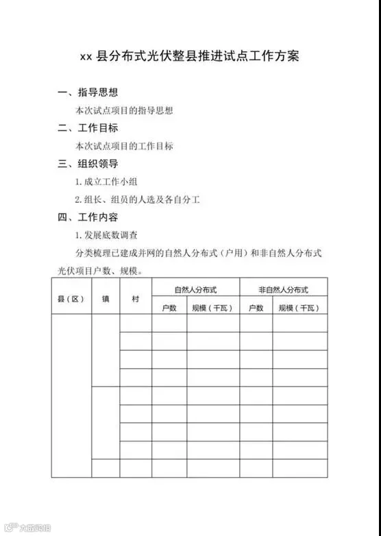 2.《xx 县分布式光伏整县推进试点工作方案》样本