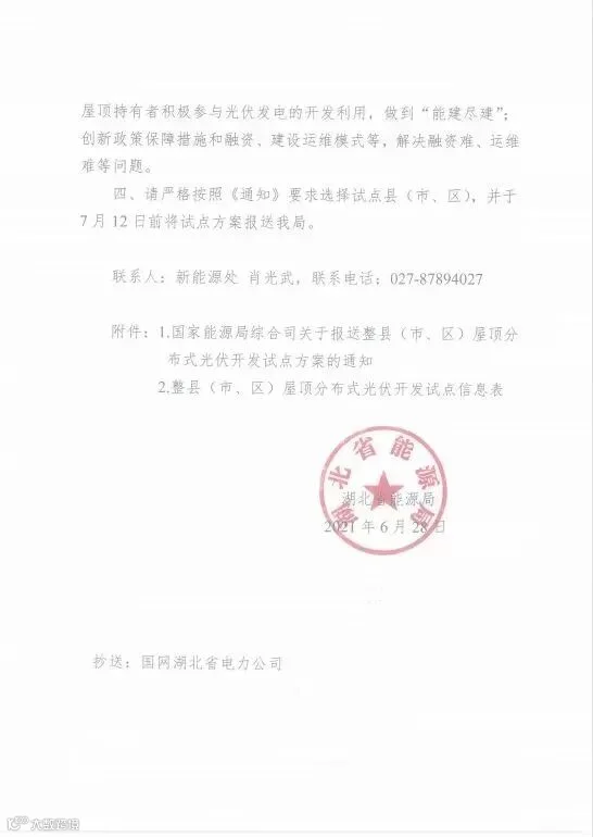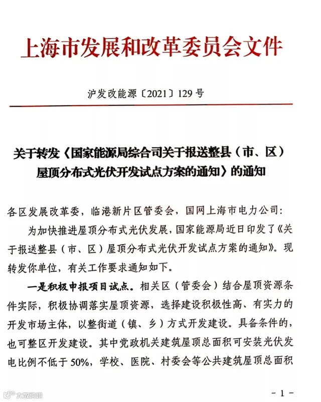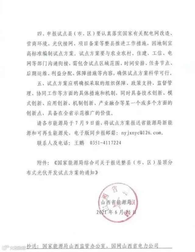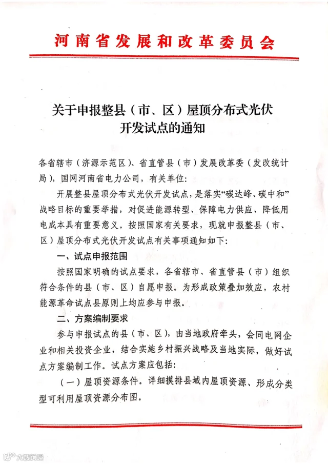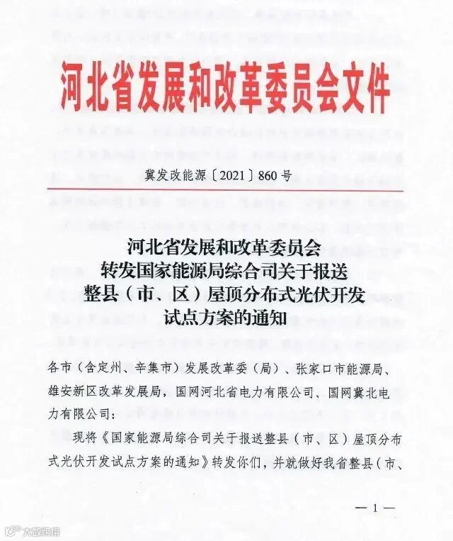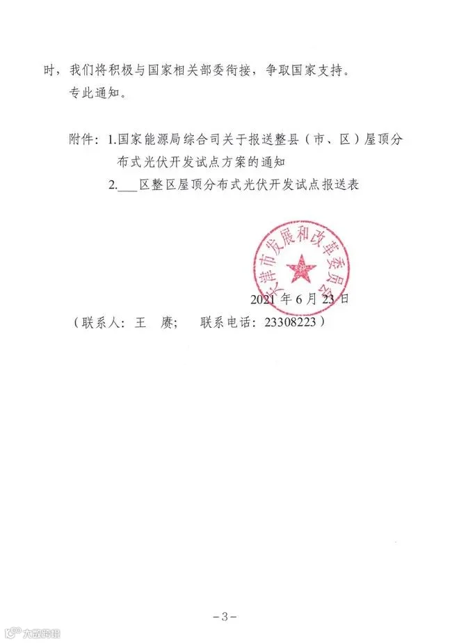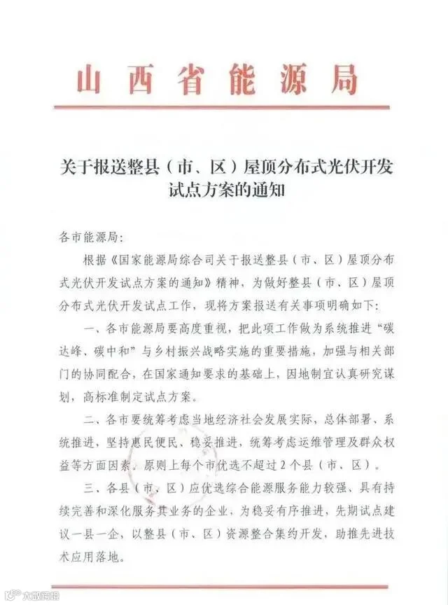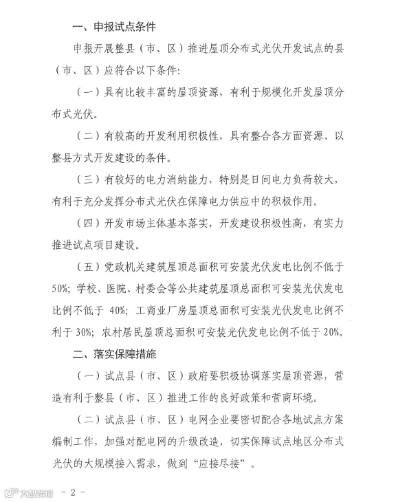 附件: 1. 《国家能源局综合司关于报送整县(市、区)屋顶分布式光伏开发试点方案的通知》