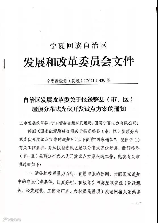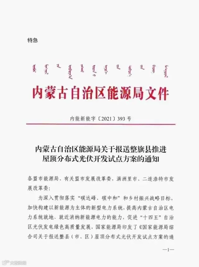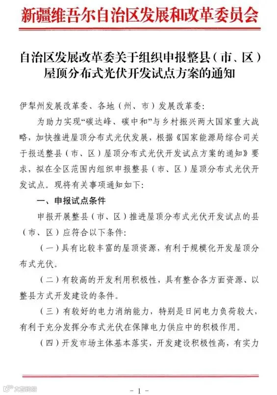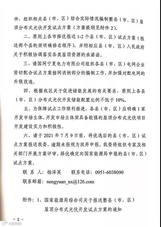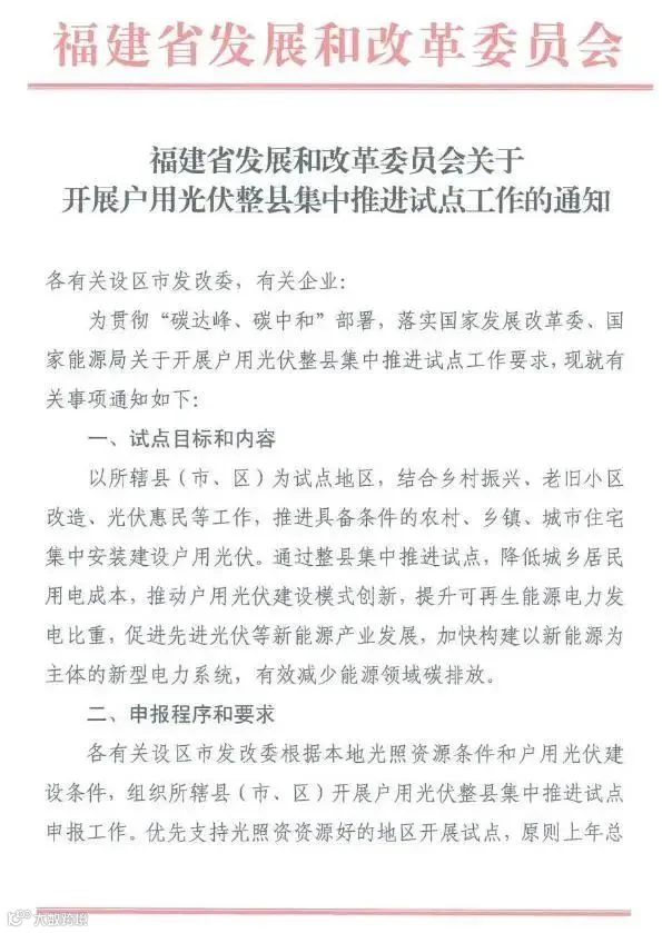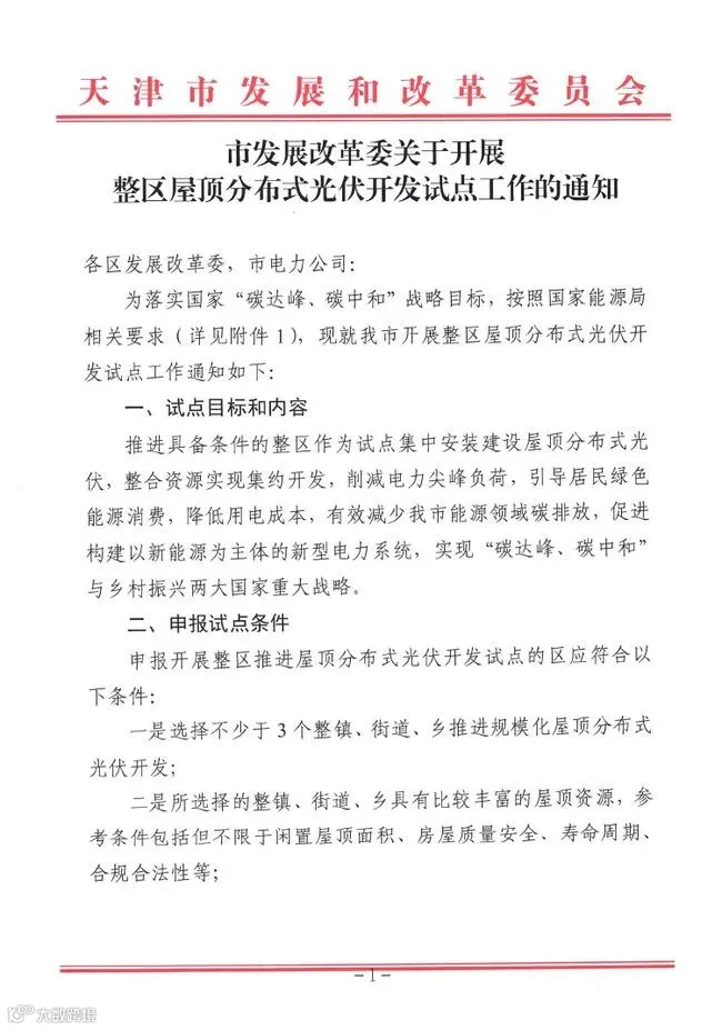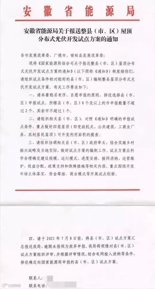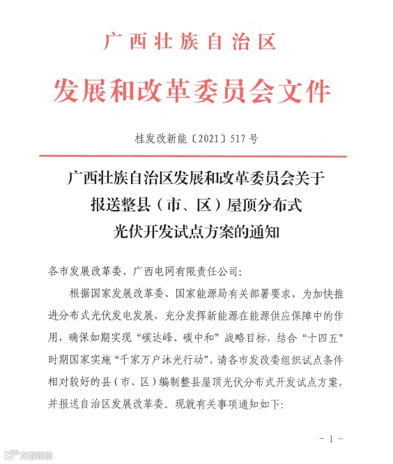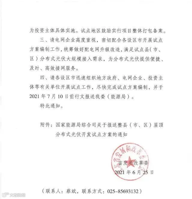 附件: 1. 《国家能源局综合司关于报送整县(市、区)屋顶分布式光伏开发试点方案的通知》
