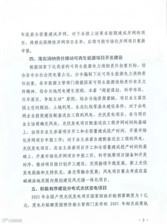 三、请主动加强与电力公司的衔接沟通,邀请电力公司深度参与方案编制工作,指导屋顶光伏电站的布局和接入,根据拟建设的屋顶光伏核算面积,计算屋顶光伏区域电网接入能力,确保屋顶光伏电站实现“自发自用、余电上网”的并网要求,力争农村居民屋顶光伏电站全容量上网,发挥屋顶光伏电站增加农牧民和村集体收入的作用。