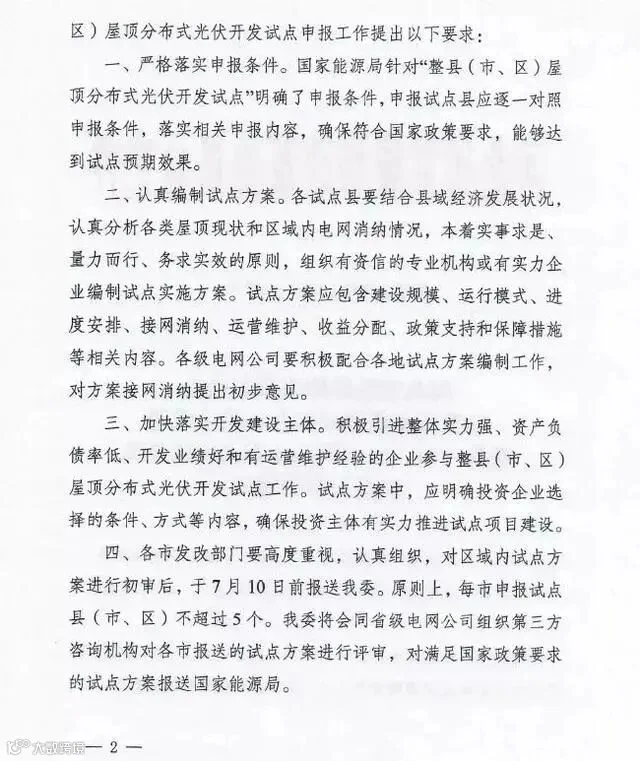 同时各市成立专班,建立推进工作机制,选择2-3个县(区)提出市级分布式光伏整县推进工作方案。