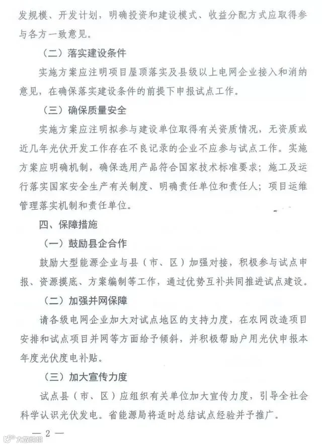 电网企业配合各市分布式光伏整县推进试点工作,统筹做好配套电网升级改造,保障试点县(区)分布式光伏具备大规模接入条件。