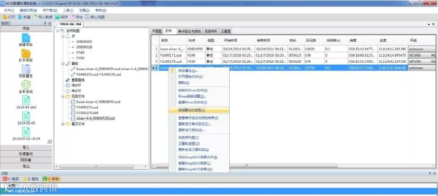 设置作业模式之后,选择动态观测文件,右键点击【转换静动态类型】,将观测文件全部转为动态文件。