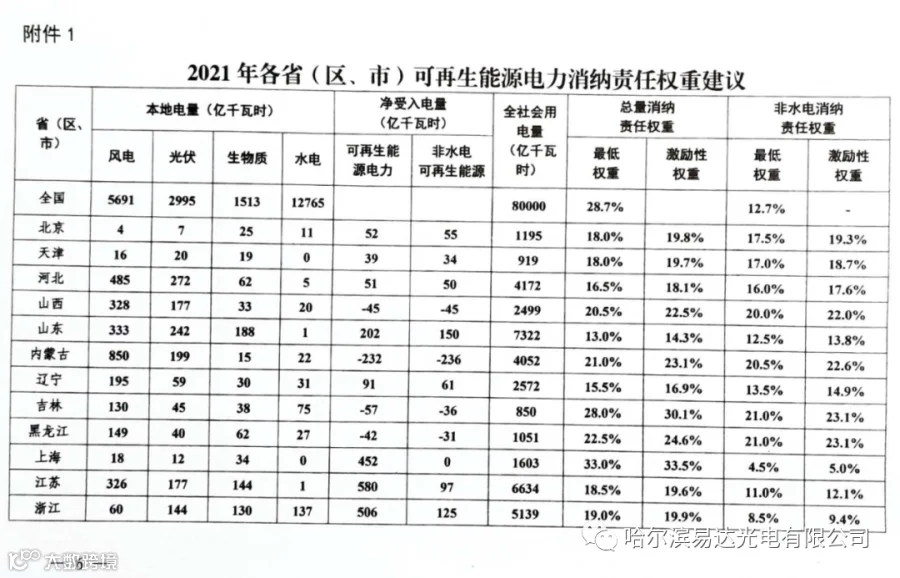 (一)关于 2021 年非水电消纳责任权重。与总量消纳责任权重测算的原则和方法相同。
