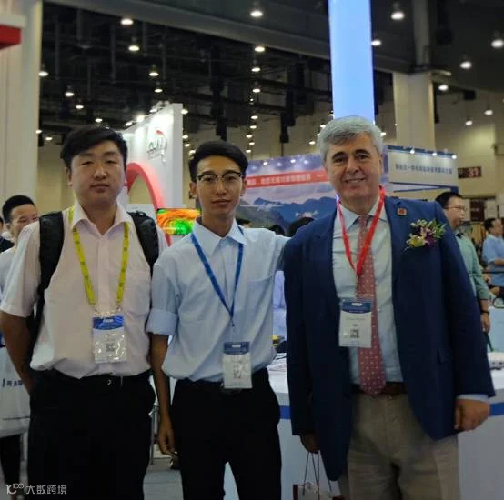 国际测量师联合会副主席奥尔汗·埃尔坎(右一)到中海达展位参观