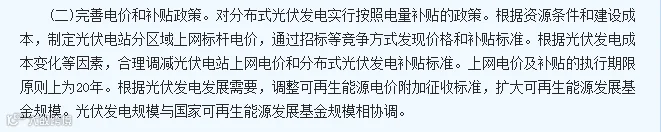 国家出台政策补贴20年国务院于2013年07月04日发布的国发〔2013〕24号《国务院关于促进光伏产业健康发展的若干意见》。其中第七大条完善支持政策中明确指出:上网电价及补贴的执行期限原则上为20年。