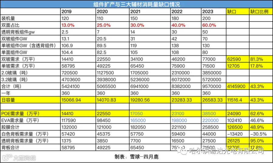 1)2021年起,双玻组件采用一面eva一面poe计算,透背组件2021年开始全部按双面eva算。