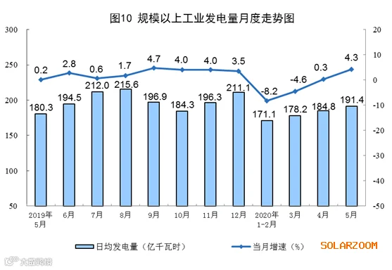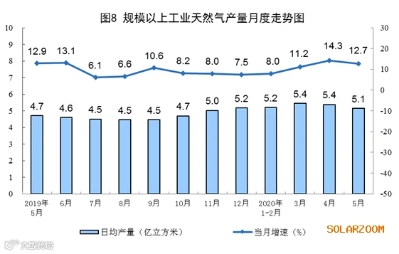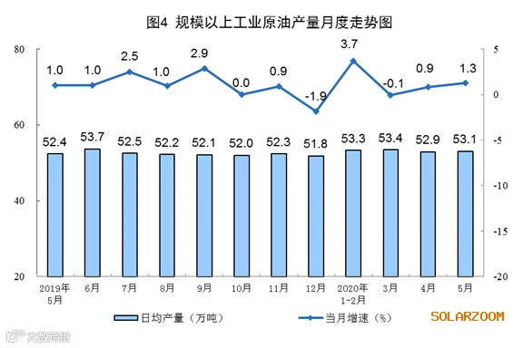 5月份,规模以上工业原煤生产由增转降,原油和电力生产加快,天然气生产保持较快增长。