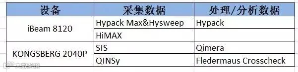 测试设备:iBeam 8120、KONGSBERG 2040P多波束测深系统