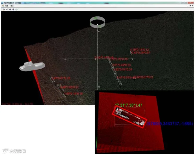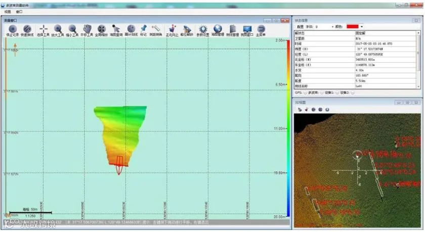 iBeam 8120多波束可配置HiMAX MBA多波束采集、导航软件,中文界面,方便用户操作和使用。同时在实时3D界面,具备水下障碍物自动量取、标注的功能,非常适用于航道部门对于水下障碍物进行扫测,方便现场判读和事后打捞。