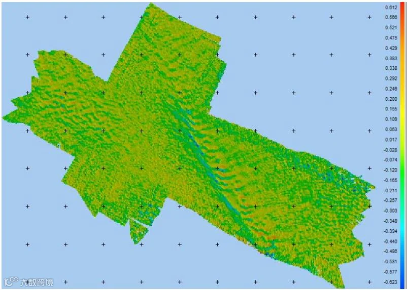 海洋公司将两套多波束的水深相减,得到如下水深差值图: