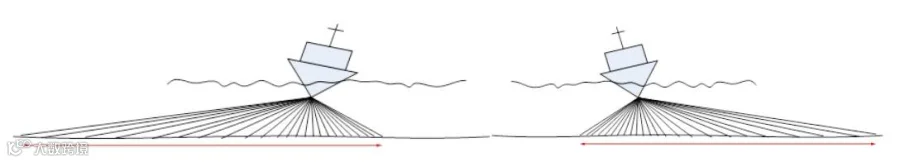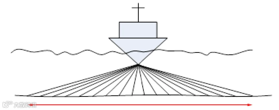 事实上,在实际测量过程中,船会左右摇晃,扫测结果会出现下图状况: