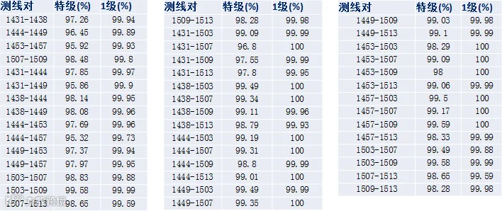 从上面统计数据可以看出,按1.96倍中误差95%的置信度进行统计,所有重合部分精度满足IHO特级精度要求。