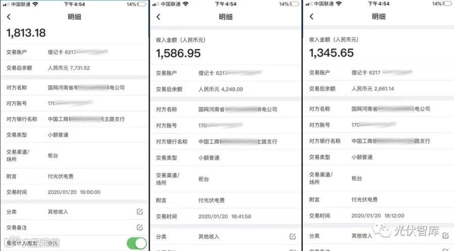 算账之前,笔者收集了几组最近在朋友圈晒的光伏收益截图,更加直观清晰: