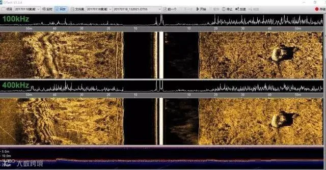 目前,国际上主流侧扫声呐工作频率均在100KHZ~1MHZ之间,海洋公司最新推出的iSide系列侧扫声呐设计工作低频主频为100KHZ,中等频率400KHZ,高频工作频率主频为900KHZ,低频主要应用于大范围扫测,高频则主要用于小范围高分辨率扫测。