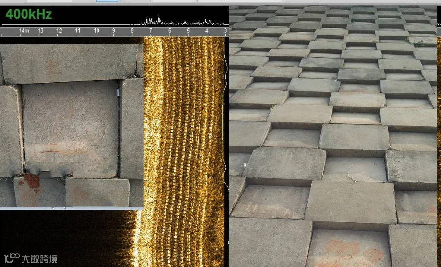 ↑Klein 4000礁石区域成像图 ↓iSide 1400礁石区域成像图