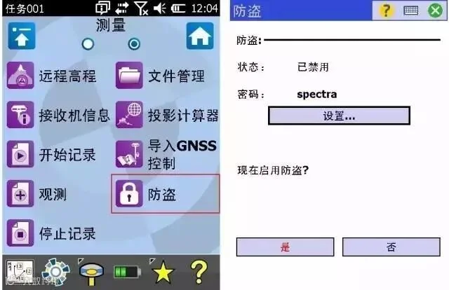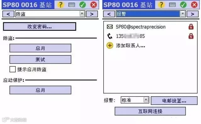 外业软件Survey Pro可以启用或停止防盗保护功能,该软件也支持防盗密码的设定、邮箱或手机号码的输入及相关设置。