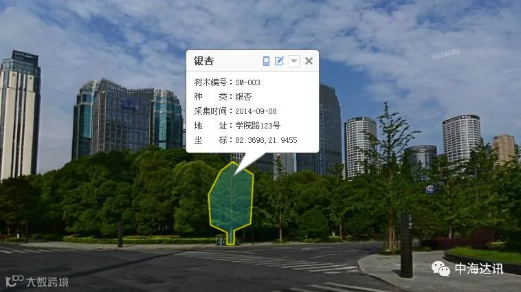 ●结合全景影像数据,可截取对应树木照片,并自动保存至属性数据库。