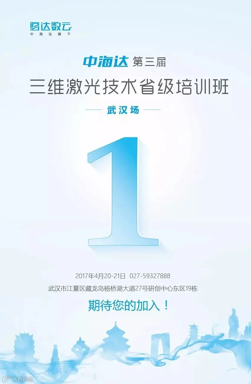 2017年4月-6月,中海达子公司武汉海达数云技术有限公司将在湖北、江苏、青海等省份举办第三届“中海达”三维激光技术省级培训班,第一场培训班将于4月20日在武汉启动,诚邀您来参与。
