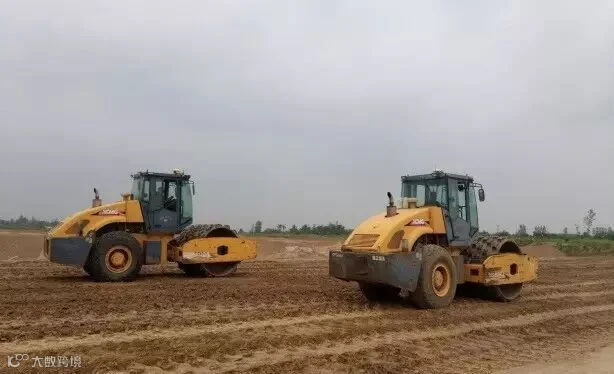 带有中海达智能压实系统压路机正在施工