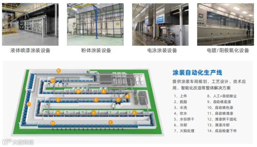 产品用途广泛,可为新能源汽车、低空经济、新材料产业、家电、家具、重工业机械等行业提供成套涂装设备产品和服务。