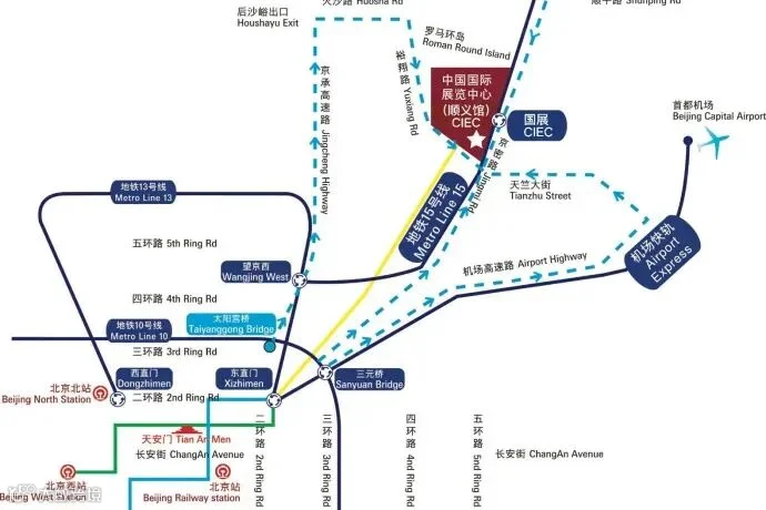公交:乘坐915、915支2、915支3、916、918、923、934、936支、936区、942支、955、970、980、987等公交线路至顺义马连店或花梨坎站下车,步行至天竺新国展