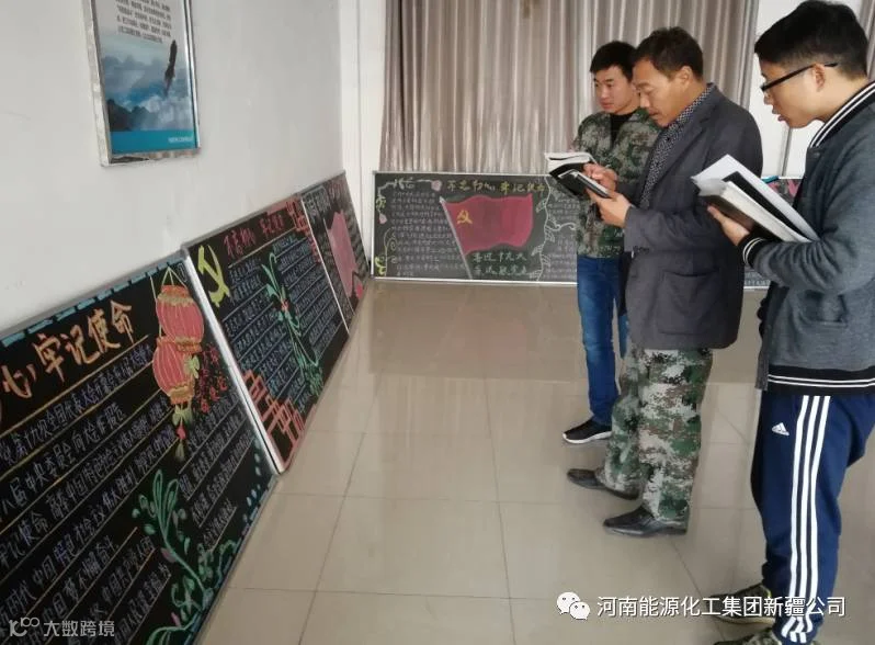 十九大会议精神板报评比。为加深各级党员干部对十九大报告中知识点的理解,强化十九大会议精神的学习,10月27日,永宁煤化党总支组织了主题为“不忘初心、牢记使命”的黑板报评比活动。各科室区队以十九大精神为主要内容,以漫画、文字等形式,从会议主题到十大历史成就、两大判断、四个伟大等,生动的展示了十九大报告中的亮点及重点,有效强化了干部员工对十九大精神的理解。