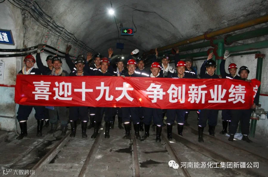 图为10月16日新疆公司职工在井下一线祝愿十九大胜利召开!