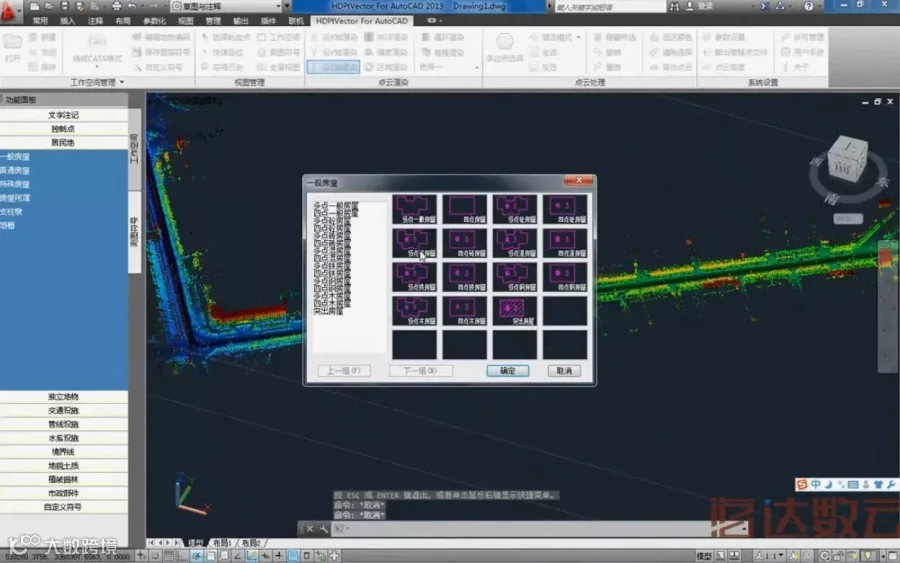 HDPtVector For AutoCAD软件支持海量三维激光点云数据,同时也可对点云进行编辑、过滤,方便客户快速测图。在点云测图功能上,与传统CASS等软件类似,内置符合国家测绘标准的地物编码,也可定制个性符号库。