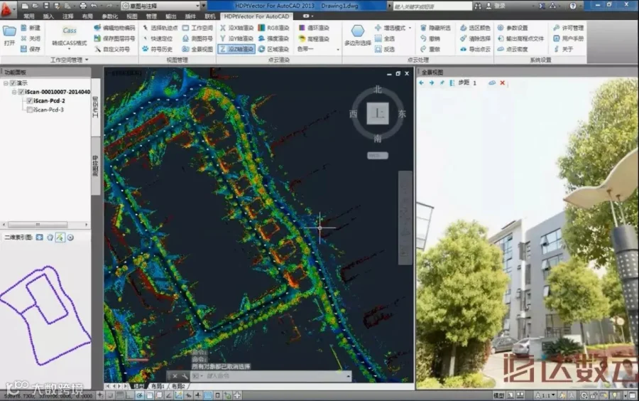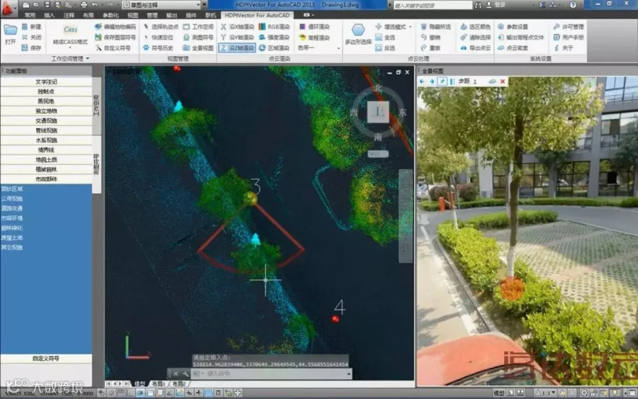 HDPtVector For AutoCAD在沿袭传统的测图模式以外,对市场需求进行调研,成功研发出一种新型测图模式-------基于全景测图。
