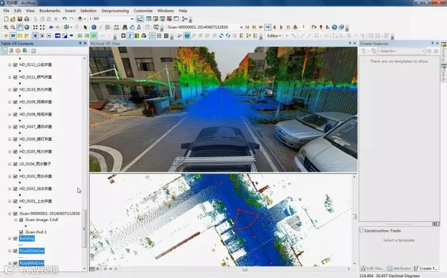 在传统测图模式中,往往基于点或备注文字来测图,不仅效率低,而且无法直观看到真实场景会造成错误测图,在使用中海达iScan移动测量系统进行采集数据后,可以在街景影像中进行测图,还原真实场景提高测图准确率。