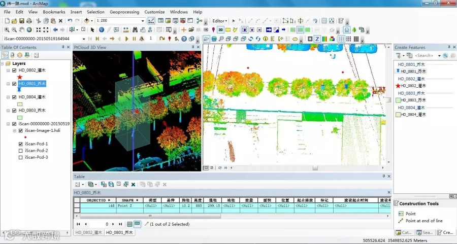 基于获取的三维激光点云及实景数据,利用配套的处理软件,可对园林树木进行快速的数据采集、更新、并提取属性信息,部分特征信息(胸径、蓬径、高度等)更可实现自动化提取。最终建立一套具有统一空间坐标的园林信息基础数据库。