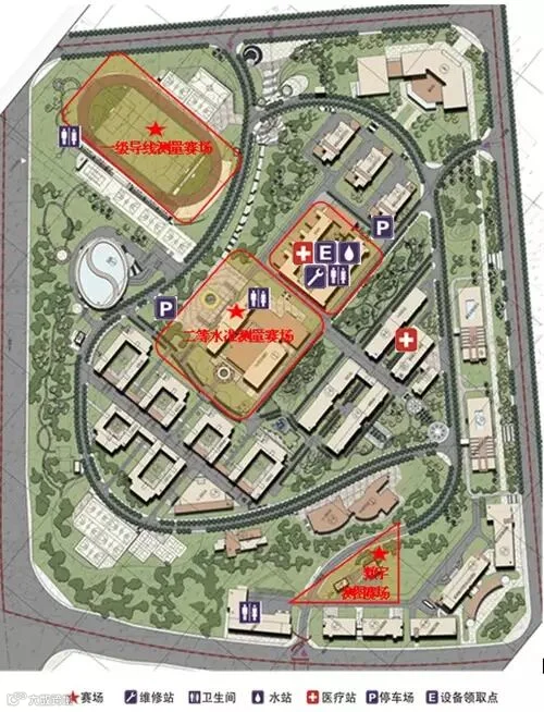 小型化RTK无论是在特别适合在有坡度的区域测量,智能的倾斜补偿,让各种环境下测量数据得到精确补偿。提前剧透一下2015年全国交通运输职业教育“中海达杯”测量技能大赛的1:500测量区域是小山坡哦,在此特别附上比赛区域指示图: