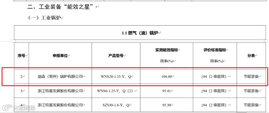 喜讯——迪森WNS系列冷凝蒸汽锅炉列入《2021“能效之星”装备产品目录》