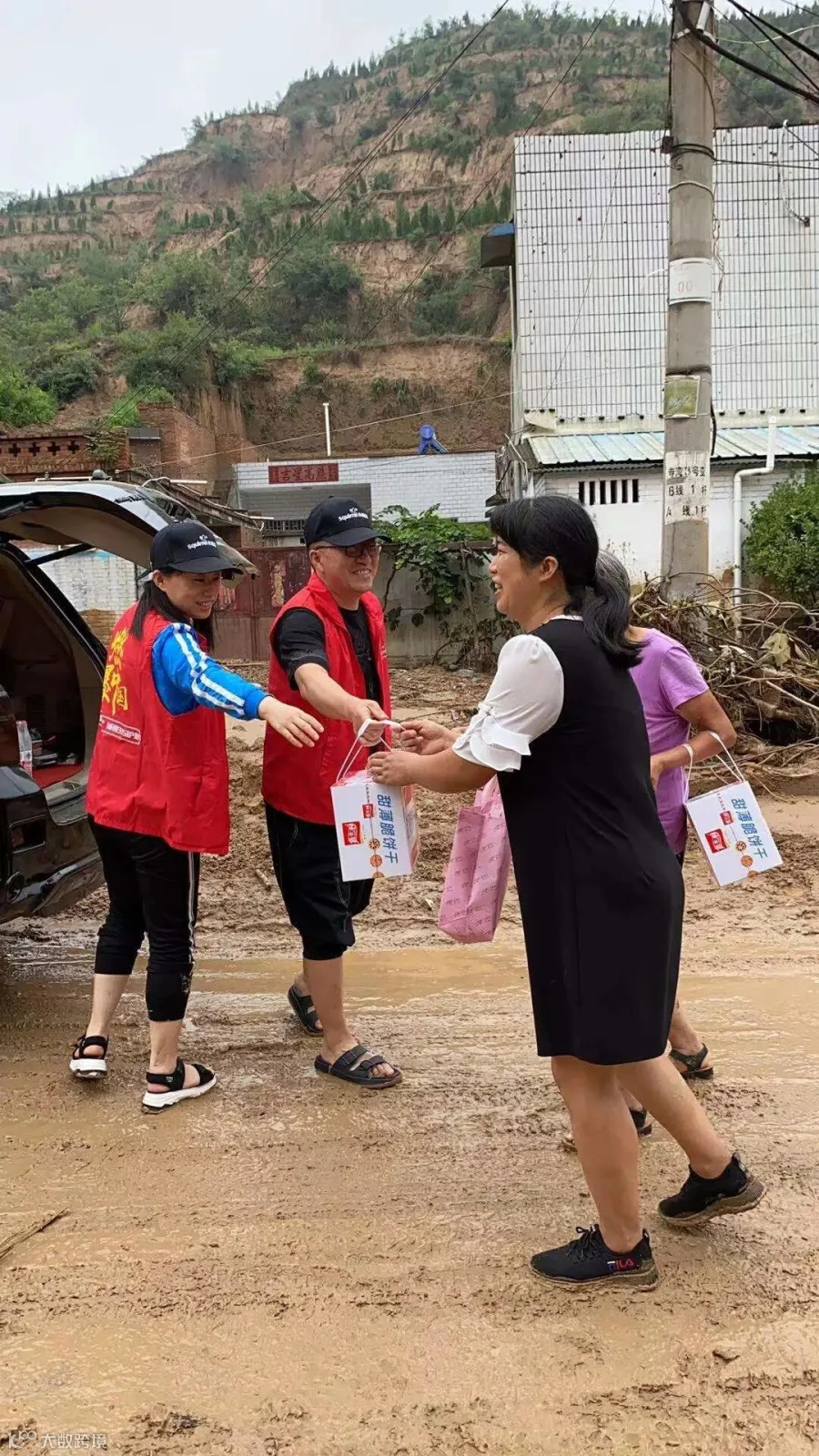 除了救援行动外,曹立军团队还担负起每天往安置点送水送食物的任务,这正是小松鼠人的奉献与担当。