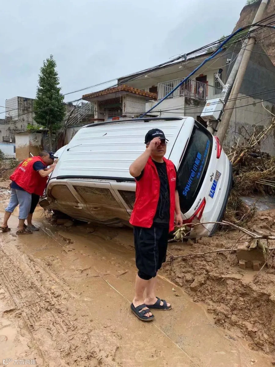 王冠军团队,也一直站在抗洪抢险的第一线。在抗洪过程中小松鼠服务车当场冲毁,而作为共产党员的王冠军,从