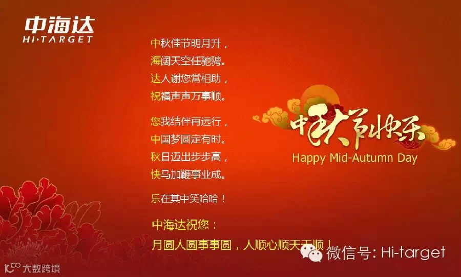 中海达祝您:月圆人圆事事圆,人顺心顺天天顺!