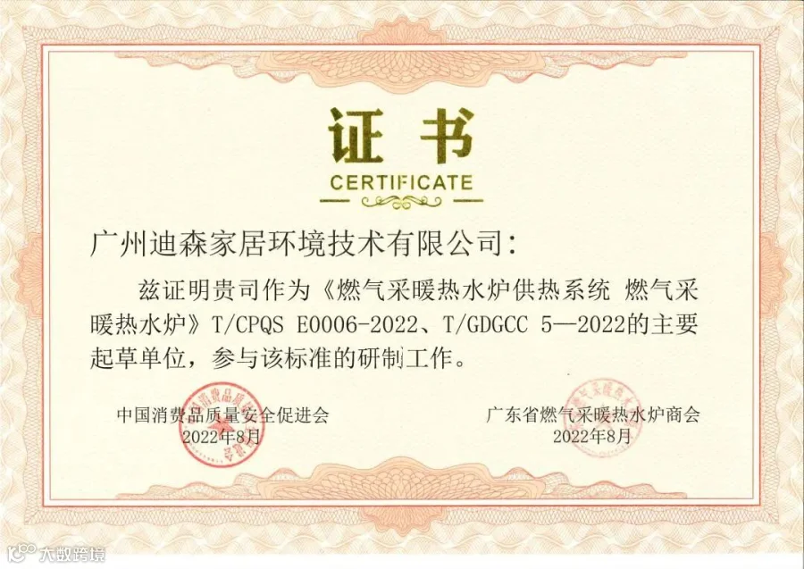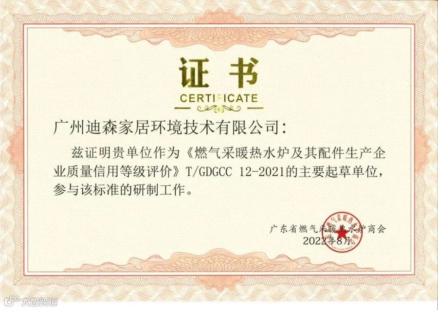 大会结束后,与会会员共同参加了中秋团聚晚宴,晚宴隆重举行了多项颁奖仪式,以表彰先进,鼓励更多企业积极创新!迪森家居一举斩获2021企业标准“领跑者”、企业标准“领跑者”单项指标冠军(核心指标:极限热输入时CO含量、核心指标:运行噪音室内型)、《燃气采暖热水炉及其配件生产企业质量信用等级评价》T/GDGCC 12-2021主要起草单位、《燃气采暖热水炉供热系统 燃气采暖热水炉》T/CPQS E0006-2022、T/GDGCC 5-2022主要起草单位等五项大奖。