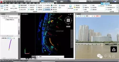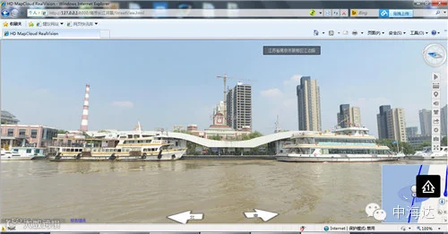 此次测试,通过高清全景相机获取的高清全景照片和三维激光扫描仪获取的高精度点云进行匹配,绘制成高清街景以及江景,可以实现在高清街景上的量测功能。
