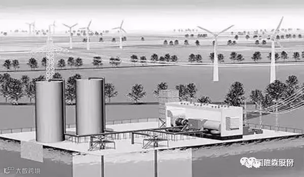 利用待弃掉的风电制氢,通过电解水,将水分解为氢气和氧气,从而获得氢。以后可直接用氢作为能量的载体,再将氢与二氧化碳反应成为合成天然气(甲烷),以合成天然气作为另一种二次能量载体。