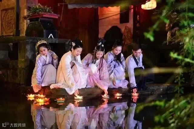 河灯也叫“荷花灯”,河灯一般是在底座上放灯盏或蜡烛,中元夜放在江河湖海之中,任其漂泛。据说,在中元节这天,鬼门开放,已故的亲人重返人间,故人们会点一盏河灯,给其照亮回家的路。放河灯的目的,是普渡与祈祷。放河灯,尤数黄河里放灯壮观。