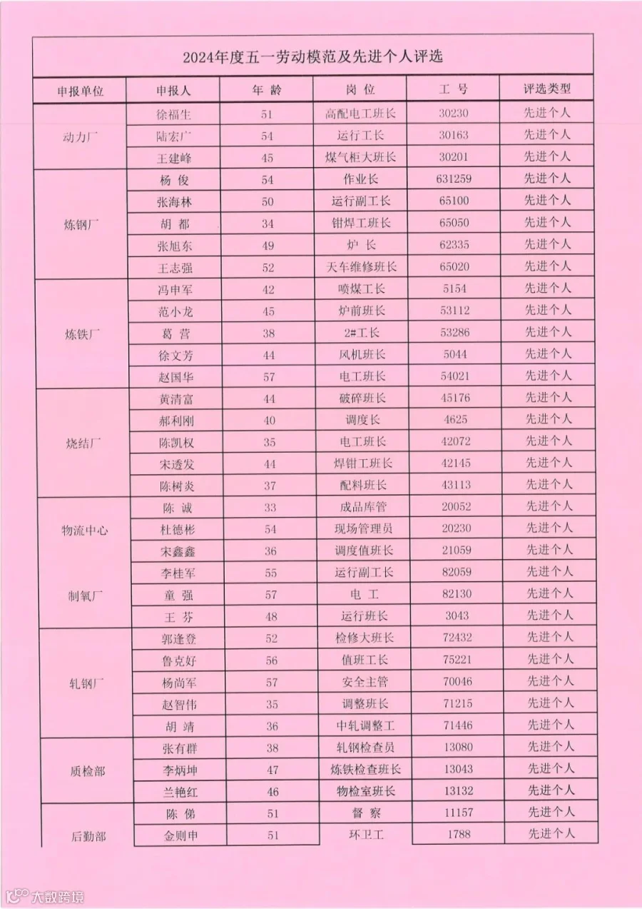 根据工作部署,层层选拔,好中选优。经分管领导确定,总经办、人力资源部初审,确定8名劳动模范、46名先进个人、4个先进车间、10个先进班组,现进行公示。
