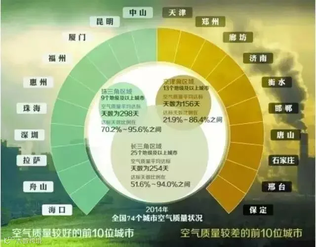 解洪兴告诉记者,大气污染治理从来都不是一蹴而就的事,虽然2014年取得了显著的成绩,但全国大部分地区距离空气质量达标还有很长的路要走。据测算,为实现我国空气质量的全面达标,SO2、NOX、一次颗粒物等污染物的排放量需要减少一半以上。而这一目标的实现,一方面需要通过加强末端减排、另外还需要推动产业结构以及能源结构的清洁化,这些也都是欧美治理空气污染的经验。