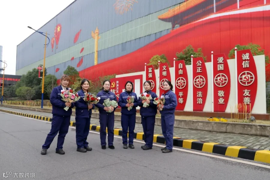 烧结车间备用主控郭咏宝:“说实话,刚收到花时有点懵,毕竟平时在车间都是和机器打交道,很少有机会接触这么‘精致’的花束。”她笑着整理了下工作服上的康乃馨,“但看到贺卡上那句‘节日快乐!愿你职场乘风破浪,感谢一路同行’,突然觉得鼻子一酸,感觉心里非常温暖。