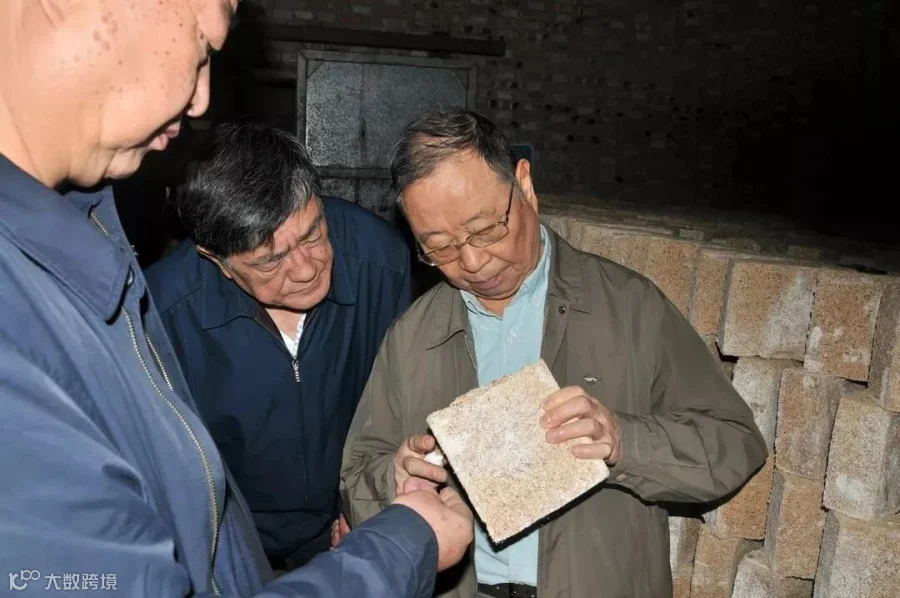 图为高景炎、沈正祥二老2018年参观山西庞泉酒庄有限公司制曲车间