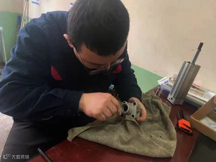 “好,第二步,我们需要检查不锈钢杆各零件是否有破损。如有破损,需要将其逐个更换后再拼装起来。你要特别注意检查一下头尾部上面的密封圈,气缸漏气大部分原因都是由此而来。”