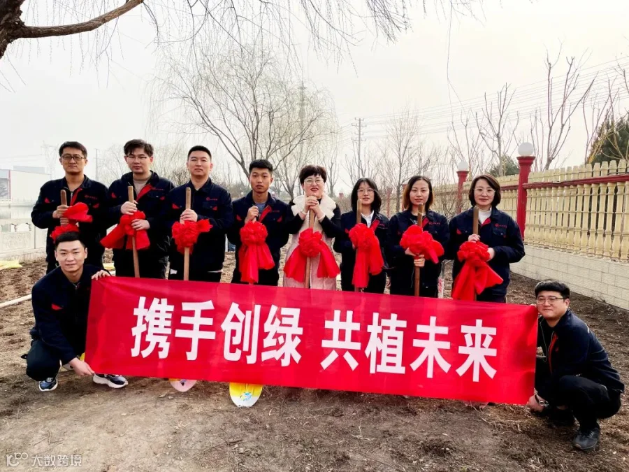 经过1个多小时的奋战,原本光秃秃的土地,已然堆红砌绿。春风拂过,一株株树苗随风摇曳,一个个绿色希望在孕育着成长。看着员工们带着汗水的笑脸,这一片绿色也将种植在他们的心里。