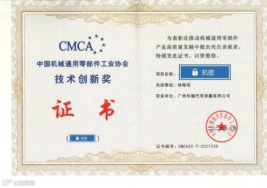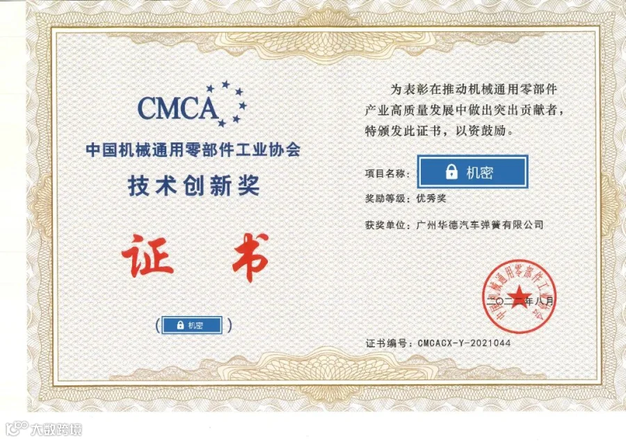 为表彰企业在推动行业高质量发展中所做的突出贡献,中国机械通用零部件工业协会授予广州华德 “技术创新特等奖、优秀奖”等荣誉。