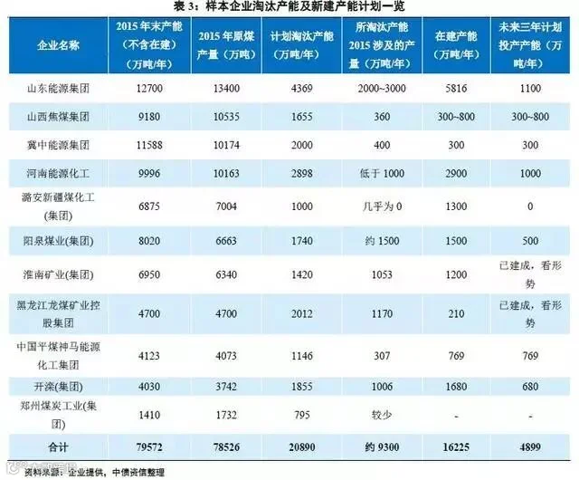 为测算出未来三年行业新增产能情况,我们仍以前述11家样本企业为例。2015年末,11家样本企业在建产能约1.6亿吨,在《意见》发布后,样本企业计划在3年内投产的约0.5~0.7亿吨。假设全国未来3年内投产产能占新建产能的比例与样本企业相同,则7亿吨合法在建产能约可投产2~3亿吨,15亿吨总在建产能约可投产4~6亿吨(根据《通知》,前期未批先建的违规煤矿存在补办手续后继续建设的可能)。考虑到7.5亿吨退出产能最多可置换约2.2~3.7亿吨新建产能,我们推测未来三年新增产能约为2~3亿吨。