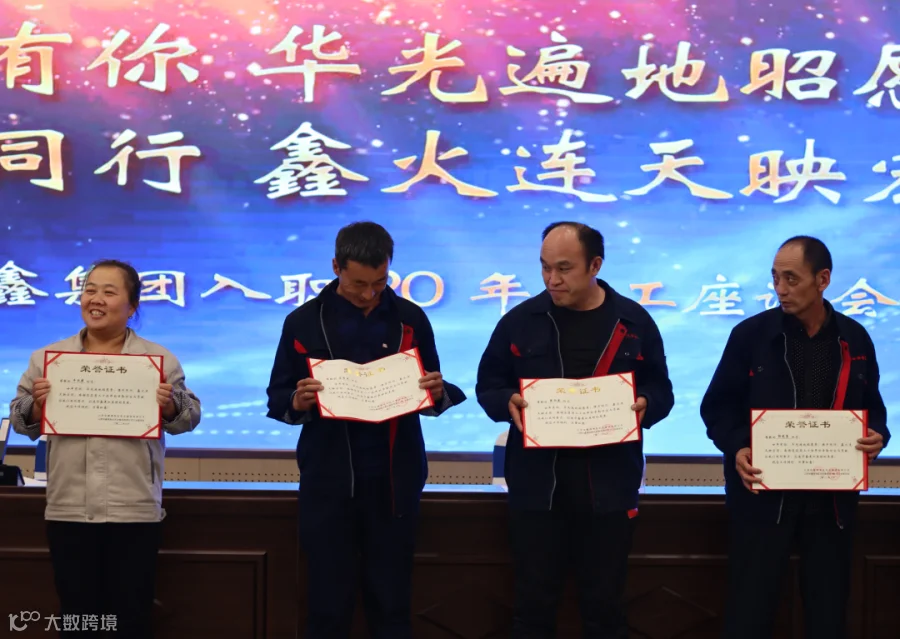 最后,集团工会主席段志斌为二十年工龄职工颁发了荣誉证书,大家合影留念。
